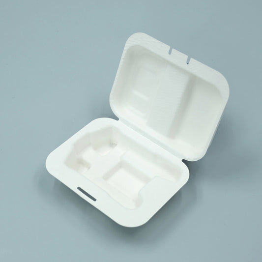 Custom Wheat Color Sugarcane Biodegradable Clamshell Packaging Box