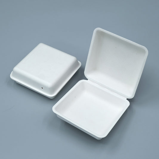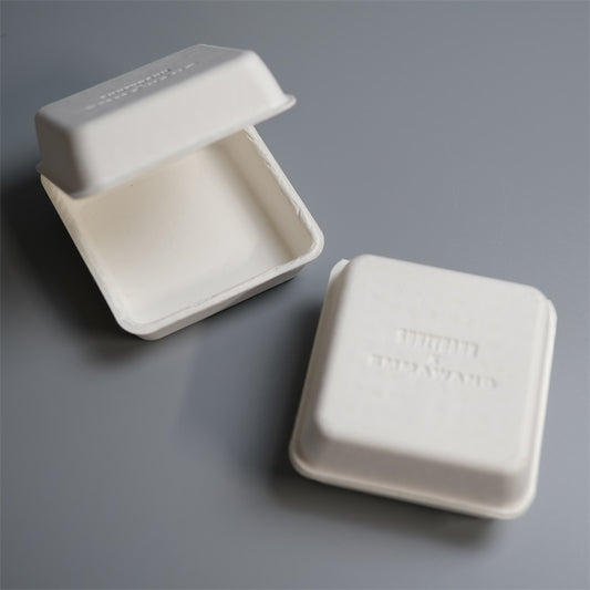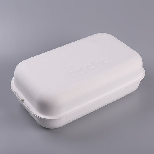 Rectangular Wheat Color Clamshell Molded Pulp Food Box