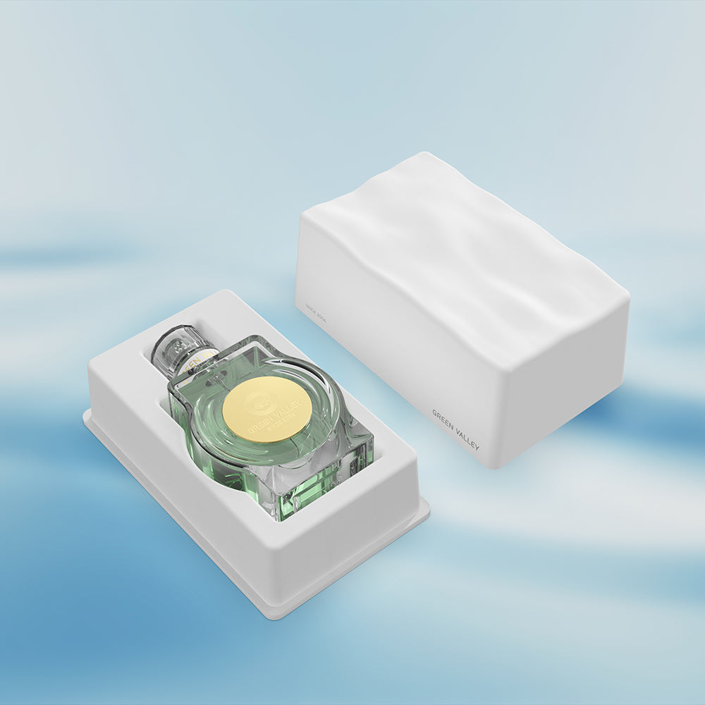 Our wholesale water ripple pattern perfume pulp box represents the perfect fusion of sustainability and luxury in modern packaging design. This innovative molded pulp perfume packaging features a sophisticated two-piece construction with a secure lid and bottom design, crafted from premium white wet-pressed pulp material. The elegant water ripple texture adds a distinctive tactile element that enhances the unboxing experience, making it ideal for high-end fragrance brands seeking to create memorable first impressions. The smooth, refined surface finish provides excellent printability for custom branding and logo applications, ensuring your perfume products stand out in competitive retail environments.